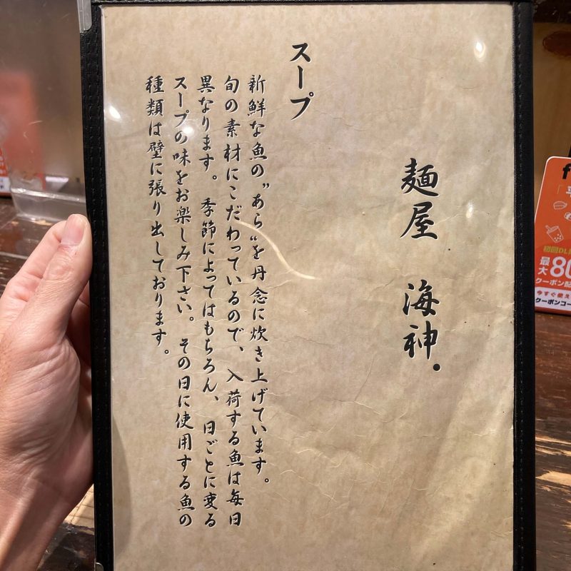 麺屋海神さん、口頭でメニューを注文、退店時にお会計です。