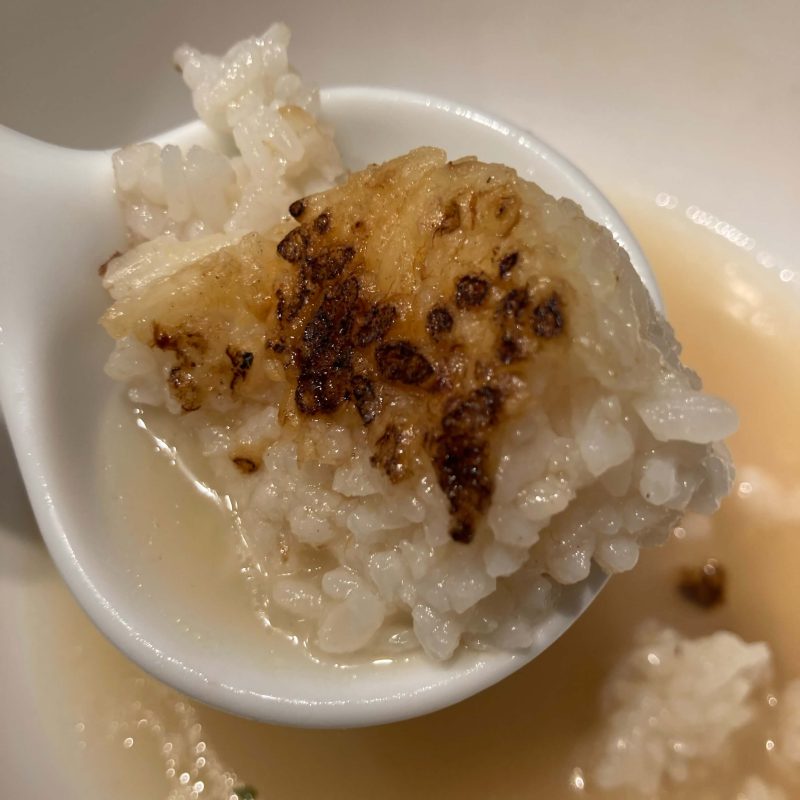 レンゲで少し崩して、へしこ君にスープが浸ったら、