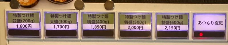 そして、もうひとつは券売機一番上にズラリと一列に鎮座する特製つけ麺