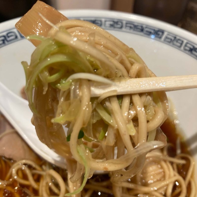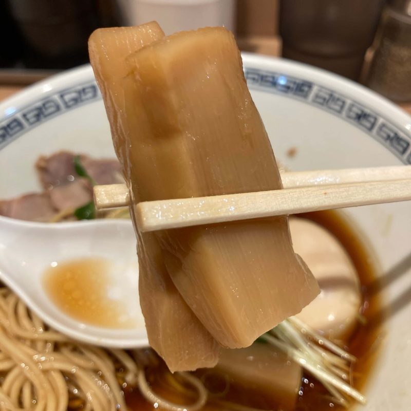 まるで揉み合うように麺とネギとメンマが一体となって組んずほぐれず、