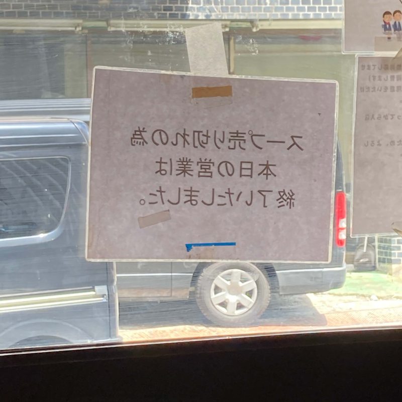 目の前でスタッフさんが入り口に張り紙を貼ってるぞ