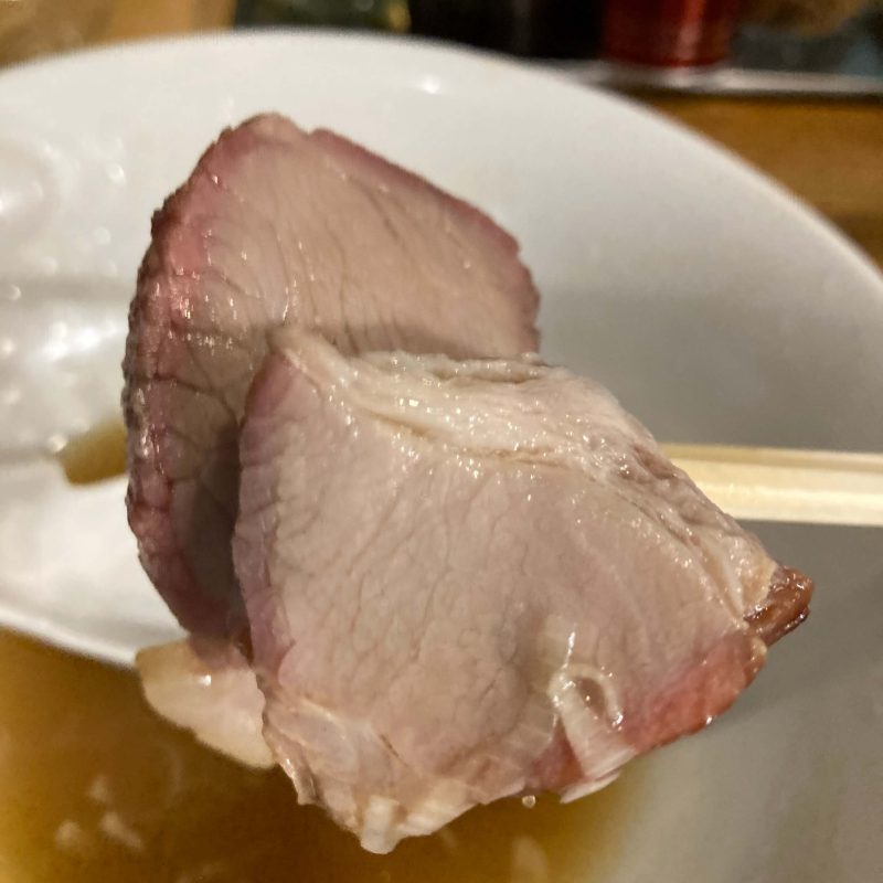 オーブンで焼かれた香り高いチャーシュー。肩ロースか。