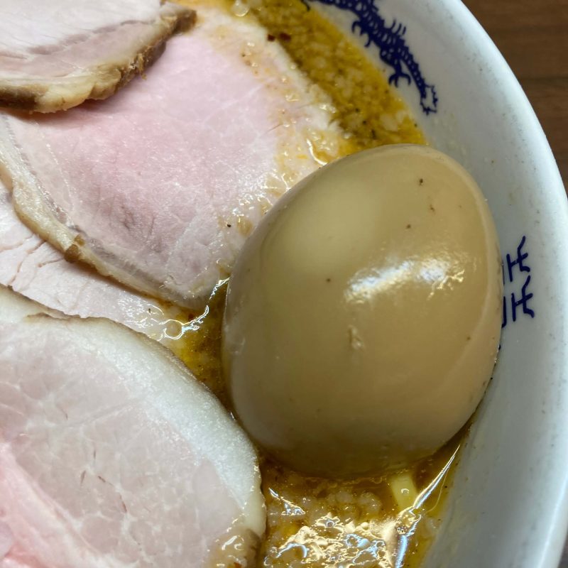 「チャーシューメンの味噌、味玉と小辛で!」